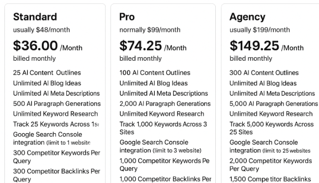 | Cons | UI feels analytical, fewer tone options | Slightly expensive, limited keyword clustering |